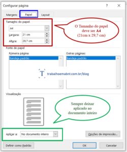 Tamanhos padrão recomendados pela Trabalho em ABNT: