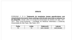 A errata é um elemento opcional que só deve ser utilizado quando o trabalho já estiver impresso. Ela deverá ser inserida logo após a folha de rosto, como uma folha avulsa onde constará a referência do trabalho e o texto da errata.