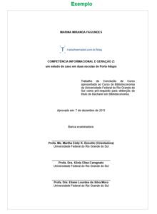 Observação: a ABNT NBR 14724/2011 não define a tipografia exata para a folha de aprovação, portanto, recursos como tamanho da fonte, alinhamento e espaçamento poderão variar conforme solicitação das instituições de ensino.