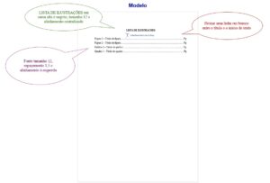 Importante: uma lista pressupõe que “itens” (plural) estejam sendo elencados, ou seja, você nunca deve elaborar uma lista para apenas uma ilustração. Recomenda-se a elaboração da lista de ilustrações quando houver pelo menos 2 (duas) ilustrações.
