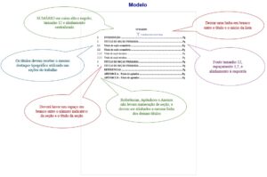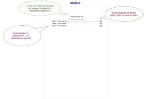 - Deverá haver um espaço em branco entre o número indicativo da seção e o título da seção. Esse espaço em branco deverá ser uniforme para a lista toda;