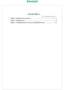 Exemplo de Lista de Tabelas recomendado pela Trabalho em ABNT: