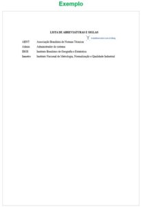 Exemplo de Lista de Abreviaturas e Siglas recomendado pela Trabalho em ABNT:
