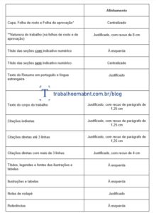 Alinhamento padrão recomendado pela Trabalho em ABNT: